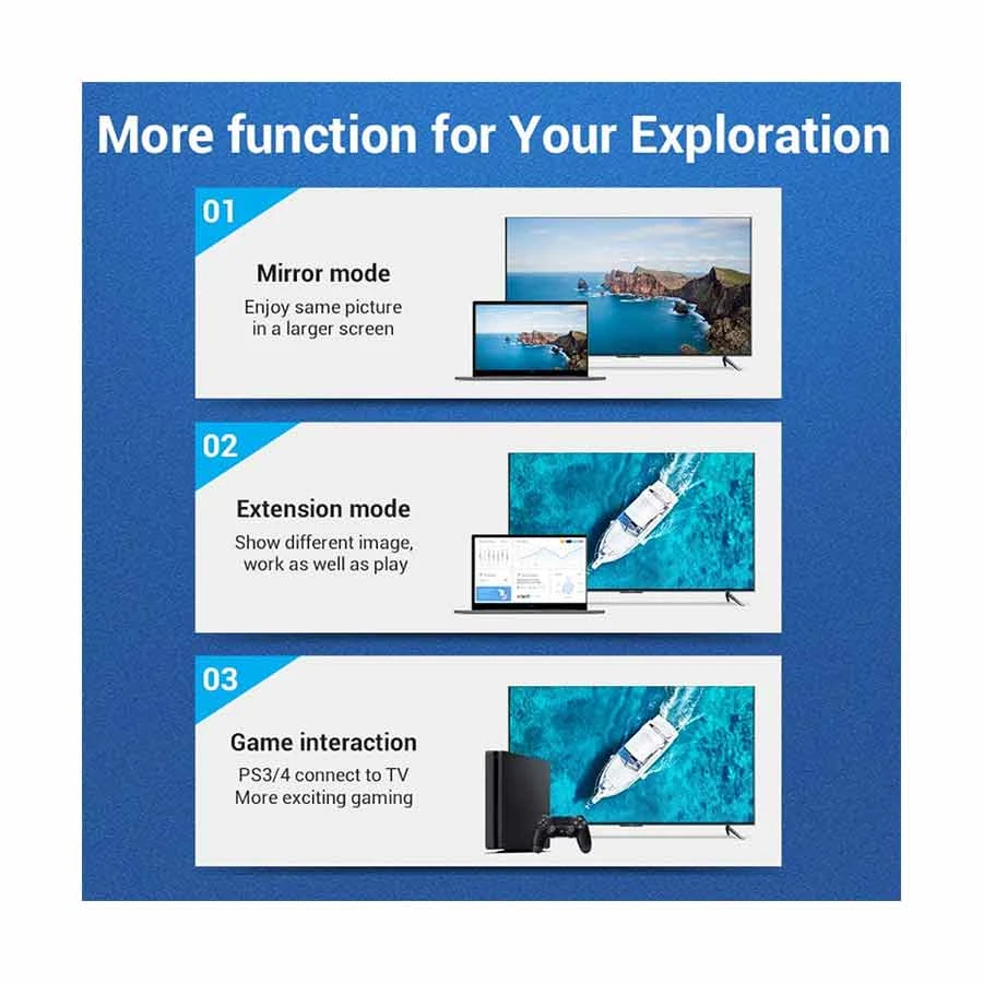 The Vention AABIH Cotton Braided 4K HDMI Cable 2M is a high-quality HDMI cable designed to deliver exceptional performance and durability for all your connectivity needs. This 2-meter cable supports a resolution of up to 4K at 60Hz, ensuring ultra-clear and sharp visuals for an immersive viewing experience, whether you’re connecting to a monitor, laptop, projector, or HD TV. Ideal for gaming, watching movies, or professional presentations, this HDMI cable provides simultaneous audio and video output for a seamless experience. The cable features a robust cotton braided jacket that enhances its durability and flexibility, making it resistant to wear and tear. The aluminum alloy shell and multiple layers of shielding protect against interference, ensuring stable and reliable signal transmission. With universal compatibility, this HDMI cable can connect to a wide range of devices, including gaming consoles, Blu-ray players, and streaming devices. The Vention AABIH HDMI cable also adheres to the HDCP standard protocol, ensuring legal and secure content transmission. Its 7.0mm diameter provides added flexibility without compromising on strength. Additionally, the gold-plated connectors ensure optimal signal transfer and corrosion resistance. Ideal for both home entertainment and professional use, the Vention AABIH Cotton Braided 4K HDMI Cable 2M combines high performance with exceptional build quality, making it a reliable choice for connecting your monitor, laptop, projector, or any other HDMI-enabled device.