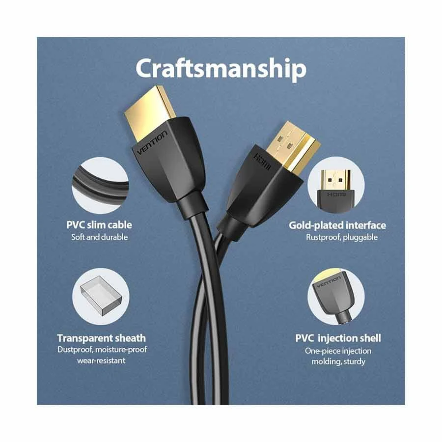 The VENTION AAIBD Portable HDMI Cable 1.5M in Black is a high-quality, compact video connectivity solution designed to deliver crisp 4K Ultra HD resolution for modern devices, making it ideal for connecting laptops, gaming consoles, Blu-ray players, media boxes, and other HDMI-enabled equipment to displays, monitors, and TVs; its 1.5-meter length is perfect for clean, clutter-free setups in desktops, conference rooms, and entertainment centers where space is at a premium, while still maintaining reliable signal transmission; built with durable materials and precision connectors, this portable HDMI cable ensures stable 4K video and audio performance with minimal interference, making it a practical and dependable choice for users seeking a simple plug-and-play solution for high-resolution media playback and everyday connectivity needs.