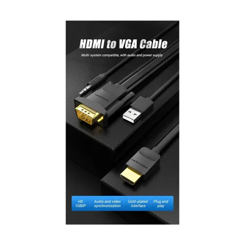 Vention ABIBF HDMI 1.4 Male to VGA Male 1 Meter Black Cable with Audio Output & USB Power