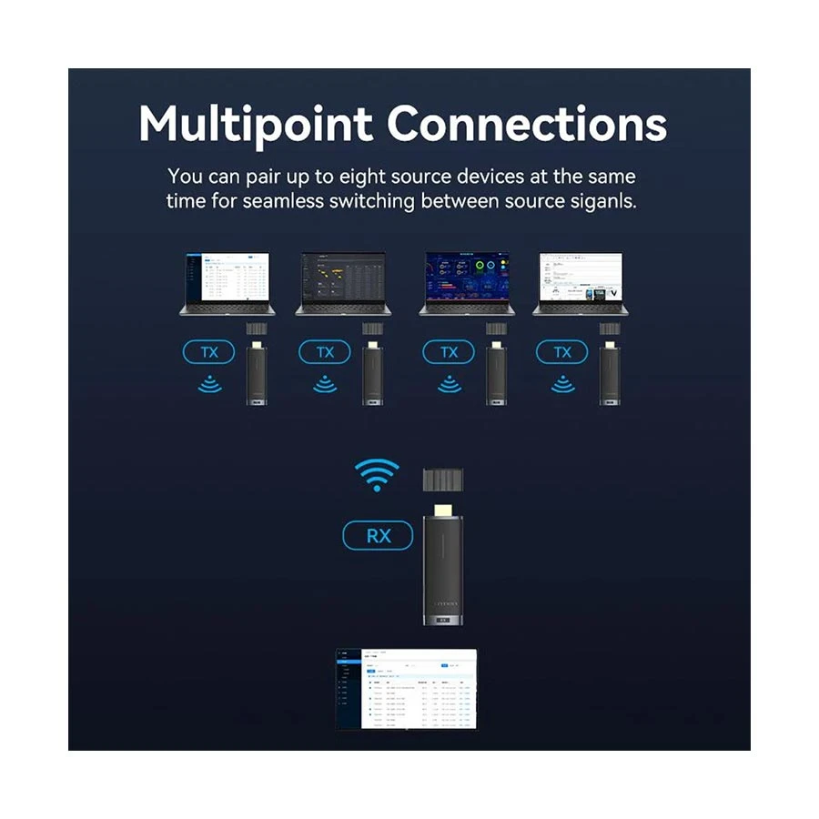 The Vention ADCB0 Wireless HDMI Transmitter and Receiver is a robust accessories that eliminates the need for HDMI cables by wirelessly delivering high-definition video and audio signals. This wireless HDMI solution provides seamless connectivity without the need for Bluetooth or Wi-Fi settings. The Vention Wireless HDMI Converter utilizes superior 5GHz transmission technology to provide stable wireless connectivity with a range of up to 40 meters in interference-free conditions. It can handle video resolutions up to 1080p at 60Hz, resulting in superb visual quality. The Vention ADCB0 has a Type-C interface for flexible connecting options and works with a wide range of HDMI devices, including HDTVs, projectors, and laptops. This compact and long-lasting wireless HDMI Converter is great for home entertainment, professional presentations, and more. the Vention ADCB0 HDMI Transmitter and Receiver is a dependable option for constructing a clutter-free multimedia setup.