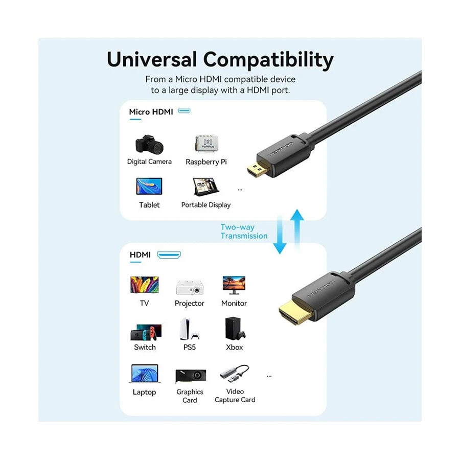 VENTION AGIBI HDMI-D Male to HDMI-A Male 4K HD Black Cable – 3M