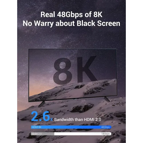 This cable is made with an aluminum alloy shell, a gold-plated plug, and a double fiber-braided jacket to make the product strong and durable. The triple shielding of aluminum foil, ground wire, and metal mesh helps prevent any loss in signal and interference. It can withstand up to 25,000 bends, thereby being considered durable. It facilitates an 8K HDMI cable for multi-mode use: mirror, extended, and game mode. It will be highly compatible with TVs, game consoles, projectors, sound systems, and other devices enabled with HDMI, hence making it highly suitable for home and office applications.