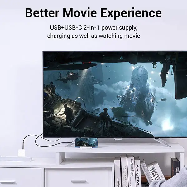 VENTION CGXBG USB-C to HDMI Cable with 2-in-1 Power Supply – 1.5M offers seamless connectivity from USB-C devices to HDMI displays. With a USB+USB-C 2-in-1 power supply, it allows simultaneous charging and media streaming. Enjoy 4K@60Hz UHD resolution for detailed and smooth visuals, ideal for movies, gaming, and business presentations.
