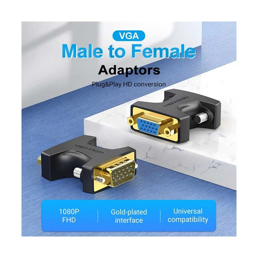 The Vention DDFB0 VGA Converter is a small, black adapter that helps you connect VGA cables easily. It’s designed to change a VGA male port to a female one. Simple and useful, it solves many VGA connection problems without needing extra tools.