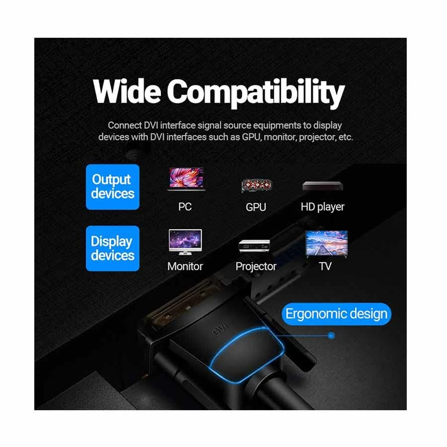 The Vention EAABG DVI (24+1) Male to Male Cable 1.5M is a reliable and high-quality video connectivity solution designed to transmit clear digital video signals between DVI-equipped devices such as computers, monitors, projectors, and older video displays; its 1.5-meter length offers flexibility for desktop, office, and multimedia setups while maintaining a tidy and organized workspace; constructed with precision connectors and durable materials, this DVI cable ensures stable signal integrity and minimized interference for sharp image reproduction; the robust male-to-male design makes it easy to connect compatible devices without adapters or converters, making it an ideal choice for users seeking dependable, plug-and-play digital video performance in everyday use.
